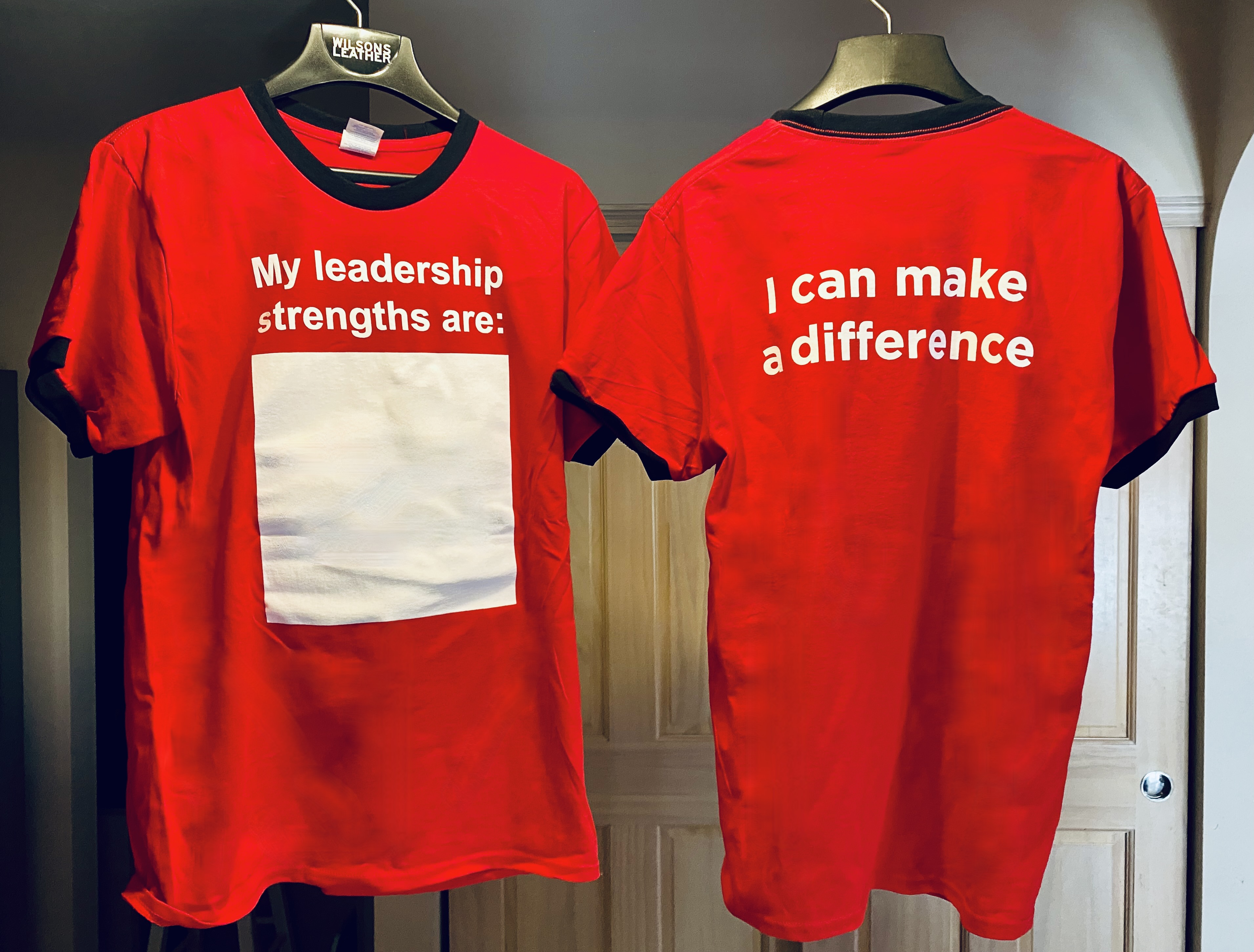 These shirts were shared as a workshop supply for participating youth, to encourage them to consider their leadership strengths, and how to continue to develop those capabilities.