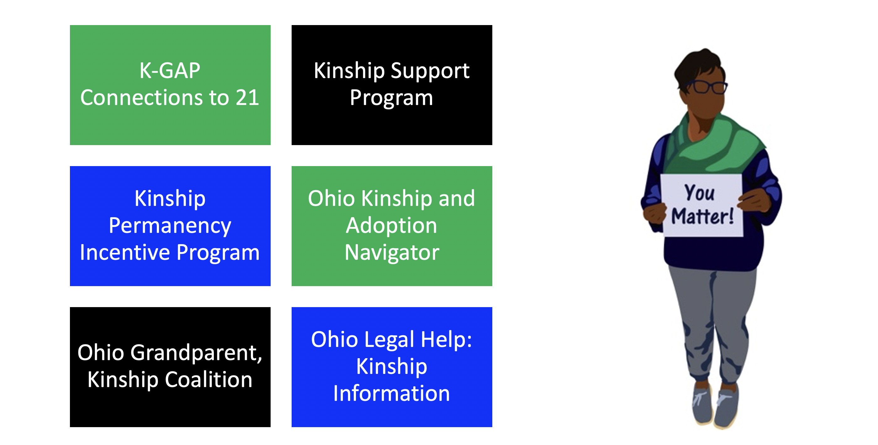 OhioKAN is a free service for Ohio’s kinship and adoptive families. Navigators assist with benefits, basic needs, child and caregiver health, childcare, child social support, education, family functioning, financial services and legal questions.