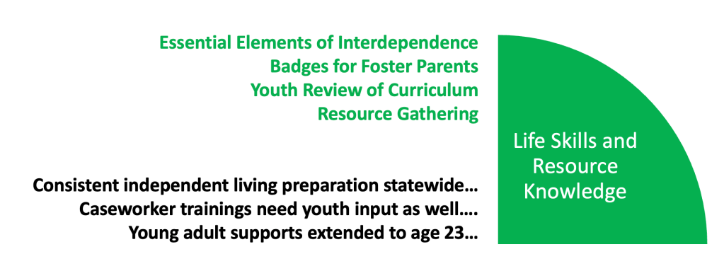 1. We have identified essential elements of interdependence, and reviewed foster parent trainings to determine their eligibility for youth-approved Life Skills badges.