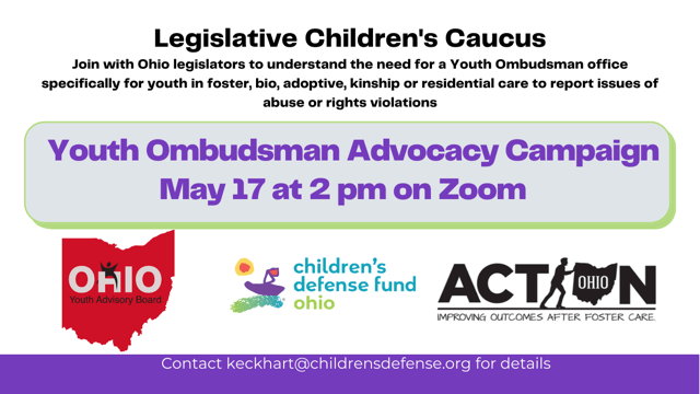 - On Jan. 4, 2022, the OHIO YAB, ACTION Ohio and CDF-Ohio met with ODJFS to discuss the experience, education and characteristics of the future Youth Ombudsman