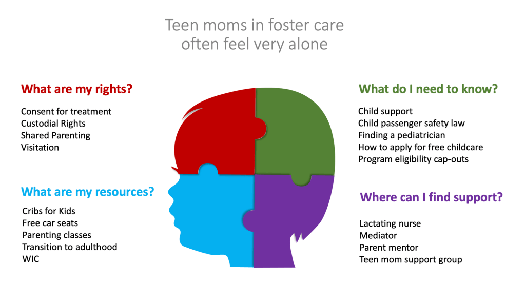 Teen moms in foster care benefit from a support system, postpartum help, and emotional education.