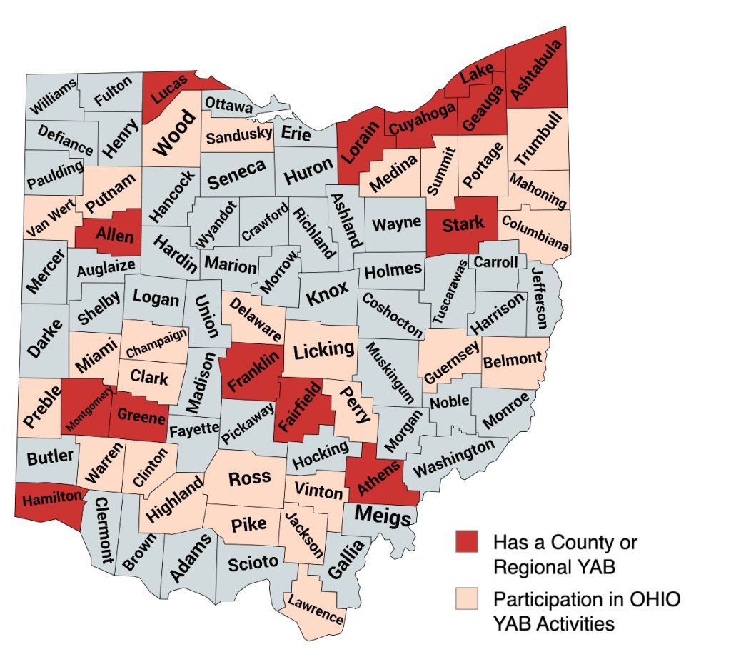 While not every Ohio county has a local or regional Youth Advisory Board, youth from the following counties have participated in one or more recent OHIO YAB statewide events and/or quarterly meetings.